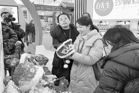 在斑斓虎创意工坊的展位上,一只只憨态可掬、调皮可爱的布老虎让观众们爱不释手。除布老虎外,展位还展示了虎帽、虎鞋、小虎枕以及十二生肖系列等丰富的手工艺品,尤其是2025年的吉祥物小蛇更是备受欢迎。大家纷纷为亲朋好友挑选这些蕴含山西智慧的特色伴手礼。大同市斑斓虎创意工坊负责人、省级非物质文化遗产布老虎传承人孙敬表示,此次他们还带来了手编发饰、香包等符合新中式审美的手工艺品,希望让更多人看到山西人的智慧与手艺,感受传统与现代交融的独特魅力。