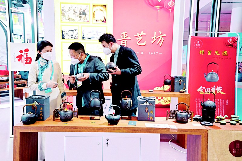 近日,在第十八届中国(深圳)国际文化产业博览交易会上,广东客商一次性定制我省参展企业晋艺坊的“遇兔呈祥”贺岁铁壶300套,单笔订单达110万元。参会客商表示,山西展区的文创产品很有新意,“遇兔呈祥”贺岁壶加上“五福临门”纯锡茶叶罐,寓意非常好。据了解,本届深圳文博会开展以来,山西文创产品颇受青睐,参展商接连喜获订单。据《山西日报》