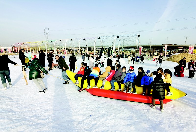 与此同时,稻田公园还特别打造了超7万平方米的嬉雪乐园,免费畅玩区、坡道滑雪区、儿童戏雪区、坦克游玩区、摩托游玩区、冰挂观赏区让游客尽情体验冰雪世界的乐趣。雪地跑道上,情侣们骑着雪地摩托和雪地坦克风驰电掣,体验着速度与激情;免费畅游区雪地滚筒、香蕉船、小雪板、自行车、冰车等30多种雪上玩具让大人、小孩玩得乐不可支;坡道滑雪区26个滑雪赛道整齐排列,游客乘着色彩斑斓的“甜甜圈”从雪道上次第滑下,笑声和尖叫声响彻云霄;冰挂观赏区,整片树林尽披白纱,玉树琼枝、冰挂悬垂,宛若仙境,吸引众多游客驻足拍照留念……