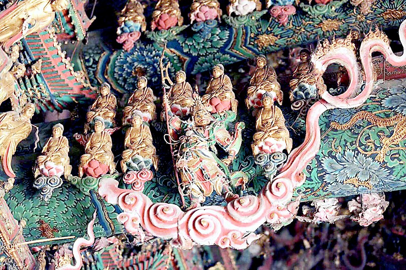 这些泥塑人物多而不乱,场景远近呼应,大小相衬,最大的佛像有3米多高,最小的可放于掌中,繁而不杂,自然有序,既呈现出仙宫佛国金碧辉煌的景象,又富于浓厚纯美的生活气息,形成一个结构严谨的整体,其设计手法,令人叹服。