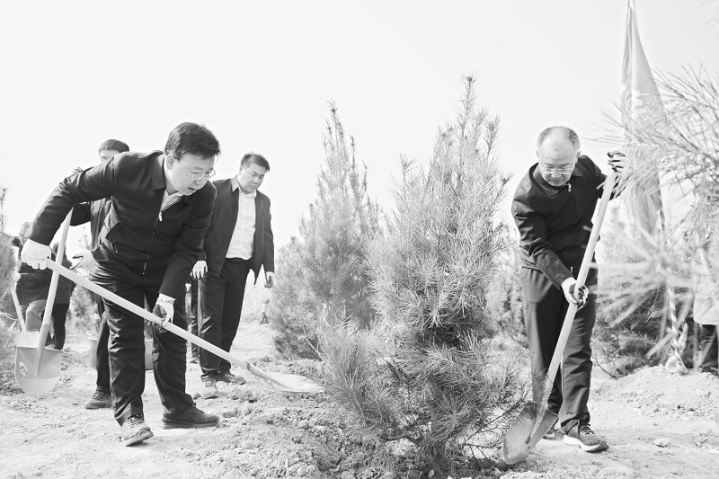 近日,太原市小店区四大班子领导及党政军民300余人在黄陵街道五大龙沟“互联网+全民义务植树”基地参加义务植树活动。