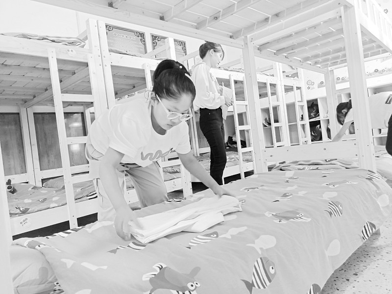本次活动紧紧围绕学生的日常生活技能和家庭劳动技能展开,根据学生不同的年龄阶段,分年级精心设计了形式多样的劳动体验项目。活动中,各个“劳动小达人”纷纷一展身手,低段学生,井然有序地穿衬衣、系红领巾、整理书包、系鞋带;中段学生,技艺娴熟地叠被子、叠衬衣;高段学生则手巧地包着饺子。