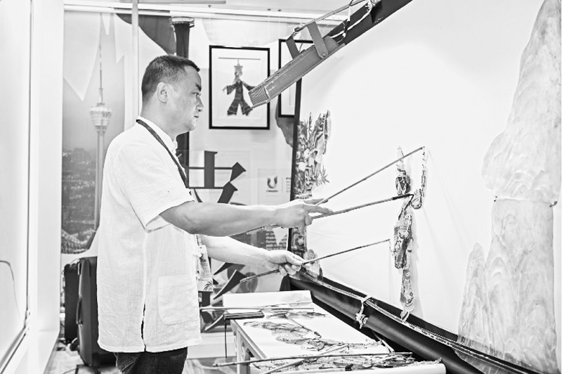 活动现场,“中华文明体验区”通过丰富展览、互动体验的形式,以寻乐中华、寻味中华为动线,展现历史悠久、蓬勃向上的文化张力,也让嘉宾沉浸式感受“赛事之城,运动成都”的大运氛围和城市活力。其中,“寻乐中华”区包含剪纸、皮影、活字印刷等体验区。成都皮影非遗传承人周军带来生动有趣的皮影体验。令人惊喜的是,太阳神鸟、金沙文化、赛事标识等成都特色和大运元素也融入到皮影中。