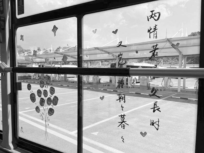 为迎接中国传统节日——七夕节,8月21日,太原公交公司第三汽车分公司四车队812五星级线路全体驾驶员精心筹备,把812路公交车布置成充满爱意的七夕主题车厢,由有绘画特长的驾驶员在玻璃窗上绘制图画,线路全体驾驶员共同张贴节日彩画,积极营造节日氛围,邀请市民乘客共度爱的节日。本报记者 王钰钦 摄影报道