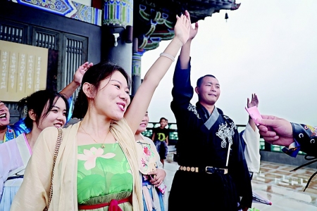 8月21日,团永济市委结合古韵、立足当下,联合永济市鹳雀楼旅游集团、普救寺景区开展了为期一天的“古韵蒲坂·绽放青春”汉服主题青年联谊交友活动,来自全市各行各业的100余名男女青年在浪漫古韵的氛围中共叙心声、寻觅爱情。