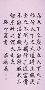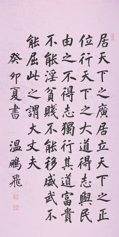 温鹏飞:我的斋号“文质”取孔子“质胜文则野,文胜质则史。文质彬彬,然后君子”之意。我认为书法与为人相似,亦有文质之分,文质平衡所体现的中庸之道,贯穿于书法的创作与审美之中。