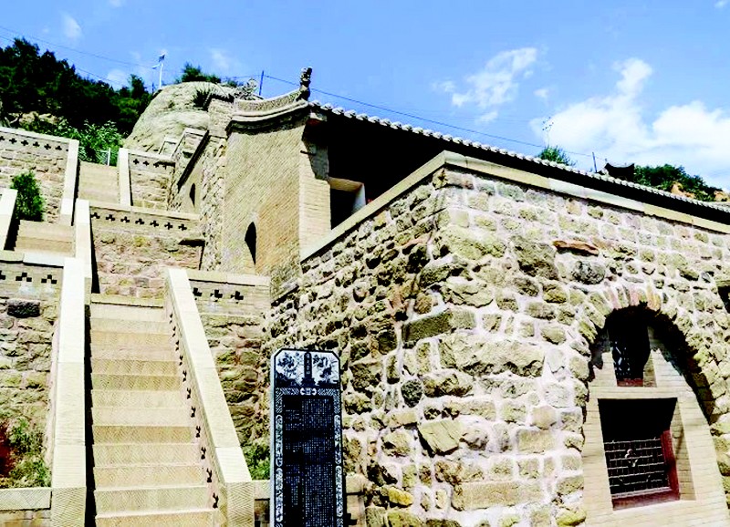 来到营里村一处茂密的山花中,远眺悬崖间有一座两进院落的寺庙,规模不大,有山门、厢房、配殿、献殿等建筑。拾阶而上,巨石就在建筑群最后,千佛洞则成为寺后佛堂。