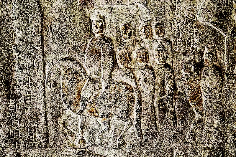 左壁供养人浮雕雕刻人物多达百人,题记字数达700多字,这些窟主名衔有邑子、邑主、开明佛堂主、开明大佛主、妇女副齐主等28种称谓,官职名有中正翊军将军、威远将军、城备都督、刺史、县令等13种,地名有襄州、前州、相州、欢县等14处。