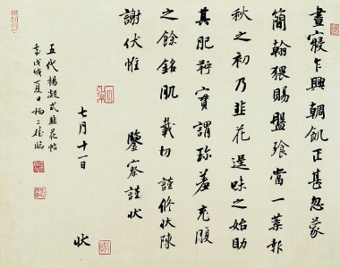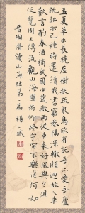 清啸阁藏帖徐渭《初进白鹿表》楷书拓本,为其38岁时任胡宗宪幕僚时所书,也是他书写较早的、较为工稳的楷书,以钟繇、王羲之为中心,点画使转顿挫又有唐人影子,颇得唐法三昧,应规入矩而又时出逸笔,使人意料不及,这是他书法较为独特之处。而其出狱之后的书作则表现出任情恣意的个性,北京故宫博物院题为 《过陈守经留饭海棠树下赋得夜雨剪春韭》的草书作品用笔豪放恣肆,笔画映带生动,结体密疏有致,章法纵逸跌宕,诚谓文长草书佳构,也是其“心”的集中表达,而表达在书法上我们又可以称之为“象”,这种“象”,既来自于对传统文化的认识,又来自于自己的“心”。在徐渭的书法中,“心”的表达是自由的,是对当时有限性的超越,个性表露无疑,成为其情感表达的宣泄之处。