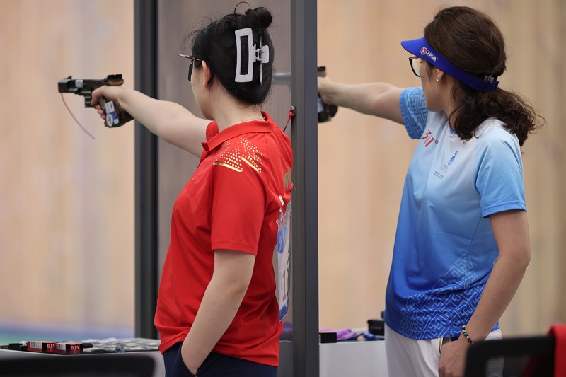 本报记者 李睿 9月26日,杭州亚运会女子运动手枪慢射比赛中,我省运动员赵楠发挥正常,以 291环的成绩排名个人第八,中国队另外两名队员发挥稳定,以 874环的成绩暂列团体第二,仅落后排名第一的印度队两环。