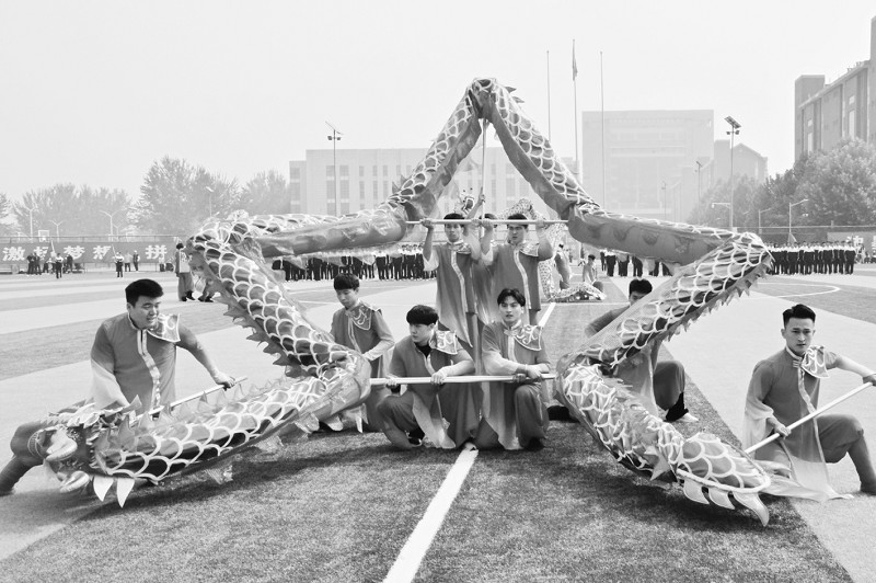 晋中学院各分工会600多名教师在开幕式上表演了非物质文化遗产项目“八段锦”,展现出饱满的精神状态。晋院学子通过独具特色的舞龙表演、形式多样的舞蹈和武术表演为这场运动会开幕式送上热烈的祝福。