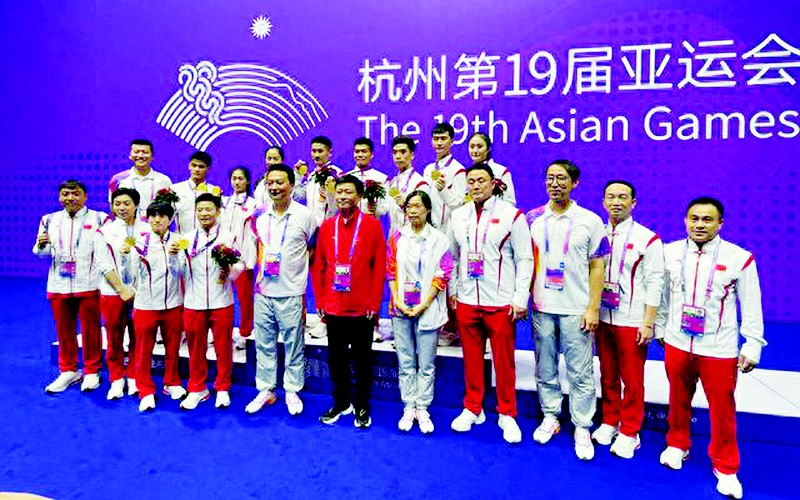 9月28日,亚运会武术男子散打70公斤级比赛,中国选手何烽力克对手成功摘金。至此,杭州亚运会武术项目比赛全部结束,中国武术队所报的11个项目全部夺金。其中,9月27日收官的武术套路比赛,中国武术队在六个套路项目中斩获6枚金牌,在9月28日的武术散打中一举拿下5枚金牌,中国武术队所报的11个项目全部夺金,成最大赢家。 本报综合