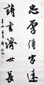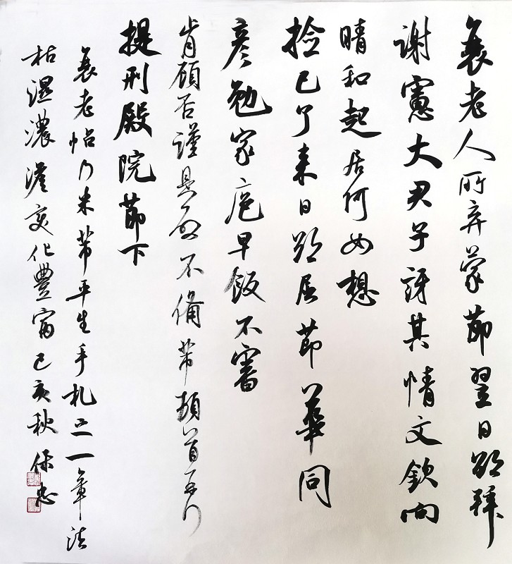 郑保忠:实用书写对字符构形的均衡、对称、和谐等有一定的要求,但是其艺术含量毕竟有限,书法仅凭这点儿单薄的“美感”是难以登上艺术殿堂的。而书法艺术则要求书家运用各种方法与技巧,从不同层面去扩展其审美范畴,强化审美功能;给机械拼合的字符注入生命的活力,使之成为姿态生动、神气动人的艺术形象;笔法、墨法、字法、章法要做到相辅相成,从而创造出一定的艺术境界。当然,还要讲究书家的才识和修养。因此,对于书法艺术来说,技法只是基础,随着年龄的增长、习字量和人生阅历的增加,不断提升自己的文化修养、审美能力等综合素养,才能让作品具备艺术性和文化内涵,具有一定的审美价值。