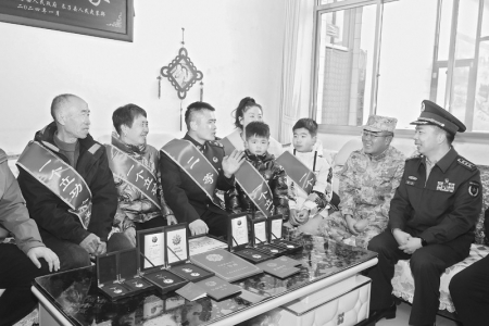 1月29日,长子县委副书记、统战部部长王慧忠,县委常委、人武部部长宋晓明,副县长胡红星,县人武部政委瞿锐及县退役军人事务局、县史志办及宋村镇政府组成联合慰问组前往宋村镇董村,为荣立二等功的现役军人李康及其家属送去喜报、牌匾和奖励金,与邻里乡亲们共同见证“光荣之家”的荣耀时刻。