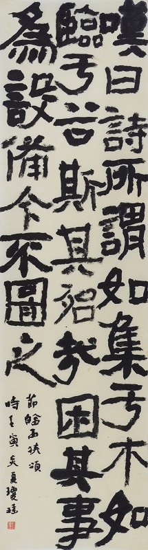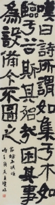 总之,书法最终所呈现的是书写者情感的表达与宣泄,“达其情性,形其哀乐”。一横一竖、一撇一捺不再是简单的物化呈现,而是打破固有的汉字造字规律,突出书家在传统书法观之上的艺术个性化表达。几千年书法的发展,古人为我们留下了太多丰富多彩、各种各样、取之不尽的造型效果,我们要立足传统,深入挖掘,善于发现,为今所用。在这黑与白的造型世界当中,书者要实现的是高远、精深、博大的审美艺术境界,主观与客观,有限与无限的高度统一。学书不可不取法古人,亦不可拘泥。心摹手追,习之有恒。我也常以于右任先生的“四多”以自勉:多读、多临、多写、多看。