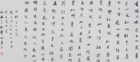 刘琼瑶:我认为,书法要讲统一观。我们说书法有五体,即:篆、隶、草、行、楷。要站在历史的长河中,要有“五位一体”的书法理念,自古至今的书法演绎与变化,它们之间必然存在着千丝万缕的联系。追本溯源,中国书法的根是“一根线”的艺术,也就是最原始的书体篆书。从东汉的隶书开始,这根线开始有了提与按,到后面的草书与行书又加入了牵丝映带,北魏的魏碑把汉字的欹侧发展到顶峰,而唐楷将楷书的法度推向极致。看似五体,各个独立,而我们在学习书法的过程中,要一以贯之。既要理解每个书体的专有特点,又要感知书体之间的相通性,固本而通变。