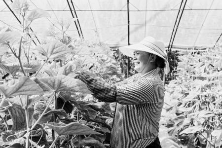 漳泽农商银行高度重视对辖内蔬菜种植户的金融支持,积极配套专项政策,创新金融服务产品,不断加大信贷投放,优化金融服务,源源不断地引金融“活水”浇灌蔬菜大棚。截至目前,该行涉农贷款较年初新增5.16亿元。图为该行支持的黄瓜种植户工作人员正在打理黄瓜秧子。 李雪