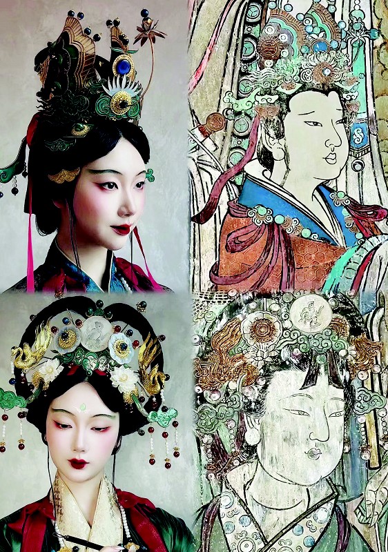 被称为“东方艺术画廊”的芮城永乐宫,保存着举世罕见的元代壁画。其中的《朝元图》壁画中,神仙服饰大袖飘飘,衣袍走动间仿佛有金色祥云环绕周身。近几年,永乐宫壁画艺术博物馆尝试进行文化创意产业跨界运营,对壁画图库进行二次开发,以年轻人喜欢的方式,重现壁画中的仙女天姿,打造跨界新国潮。