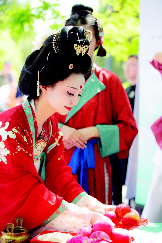 为给游客提供沉浸式的国风文化体验,晋祠博物馆打造了山西国风文化亮丽名片“晋祠国风文化节”,并荣膺“全国文化遗产旅游优秀案例”。4月25日,晋祠还举办了“牡丹香韵 礼敬晋祠”牡丹节,众多汉服爱好者赏花游园,与牡丹一争国色。“游客可体验蹴鞠、投壶、射箭等传统项目,也可以穿着汉服,参考晋祠侍女像的风格,拍一组国风大片。”晋祠博物馆的工作人员说。