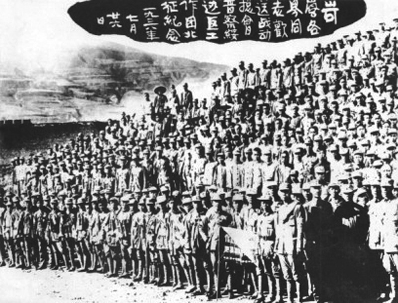图31938年7月,岢岚县各界欢送战动总会晋察绥边区工作团随八路军大青山支队北上大青山,创建抗日根据地时留影。