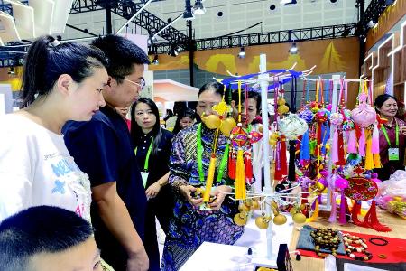 在文化贸易馆内,琳琅满目的国际化商品吸引了众多的游客。从伊朗地毯到巴基斯坦铜器,从尼泊尔宝石到越南沉香……36个国家的特产,让游客不出国门就可购得原产地商品。