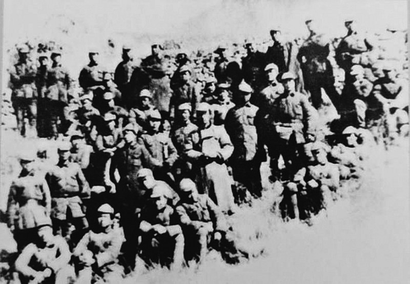 1940年春节,在八路军总部驻地武乡县王家峪召开文化、教育工作者座谈会,朱德总司令(前排左六)等参加座谈会。