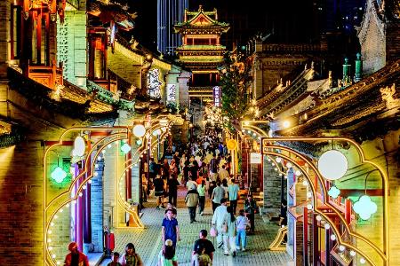 9月13日,夜幕下灯光璀璨的太原市钟楼街人流如潮。 近期,“2025年度AURA亚洲城市更新奖”揭晓,太原历史文化名城钟楼街片区修缮(复)保护工程从近300个案例中脱颖而出,荣获“城市更新建筑设计金奖”,再次让世界看见太原的风采。随着钟楼街亮化品质提升工程的完成,千年古韵与现代活力相融合的钟楼街宛如穿越时空的画卷,以它独有的方式,将太原的过去与未来娓娓道来。走在钟楼街上,仿佛能听见历史的回响,也能触摸到时代的脉搏。 本报记者 胡远嘉 摄影报道