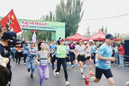 城市赛场的余温未散,乡村赛道的活力已然登场。9月27日,小店区乡村田园健康跑在刘家堡乡王吴村开跑,2000余名跑者沿着特色赛道开启田园之旅。此次赛道串联了蘑菇培育基地、梨园、草莓小镇等特色点位,沿途供应的早黑宝葡萄、玉露香梨等本地特产补给,让跑者们在奔跑中近距离感受乡村振兴的丰硕成果。
