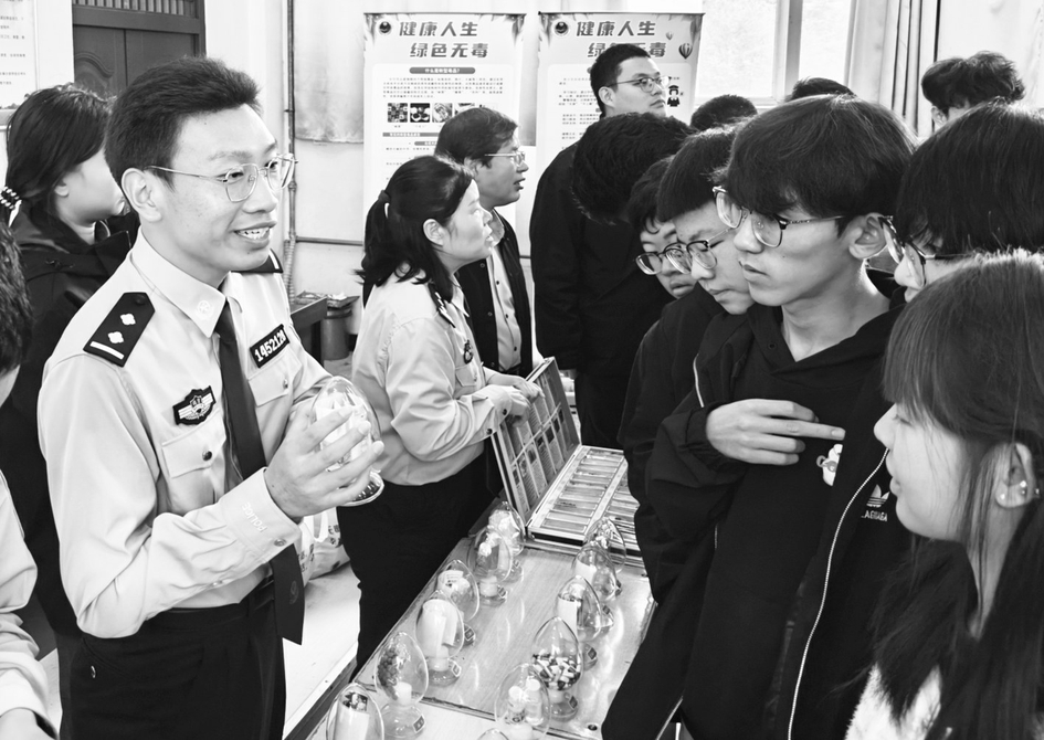 活动现场,该所民警以鸦片战争为切入点,回顾了我国近现代禁毒史,深刻阐述了“历史之痛”与“当下之危”,分析研判了当前毒品犯罪的隐蔽化、低龄化趋势,使在场师生深刻认识到禁毒斗争的重要性与紧迫性。
