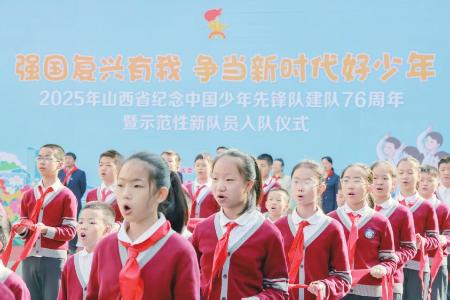10月14日,“强国复兴有我 争当新时代好少年”——2025年山西省纪念中国少年先锋队建队76周年暨示范性新队员入队仪式在太原市第二实验小学校举行。本次活动由共青团山西省委、山西省少工委主办,共青团太原市委、太原市少工委、太原市第二实验小学校共同承办。团省委、省少工委及太原市相关领导与全校师生共同见证这一庄严时刻。
