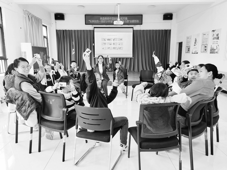 活动中,“动物卡片选择”环节迅速点燃了现场气氛。在印有不同动物的卡片中,孩子们从中挑选一张代表自己形象的卡片,并分享选择理由。有的渴望拥有勇气,有的展现了自身温和的性格。每一张卡片背后,都代表了一次真诚的自我表达。