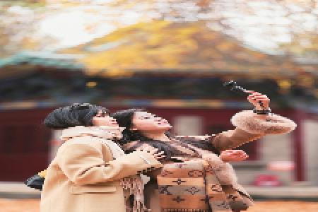 10月20日,两名青年在太原文庙百年古树下与秋色合影。 云天收夏色,木叶动秋声。近日,气温逐渐转凉,各大公园景区内绿植悄然变换了颜色,吸引众多游人前往打卡拍照,驻足欣赏这迷人的秋色。 本报记者 胡远嘉 摄影报道
