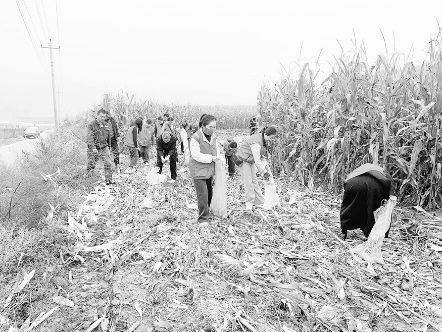 在岔口乡关头村,党员志愿者穿梭在田间地头,细致捡拾散落的玉米棒。“志愿者一来,半天就帮我收了2亩多!”种植大户李翻翻感激地说。古交市林业系统各党支部既提供劳动力支持,又发挥专业优势,为农户检修农机具,全力配合农户抢收。