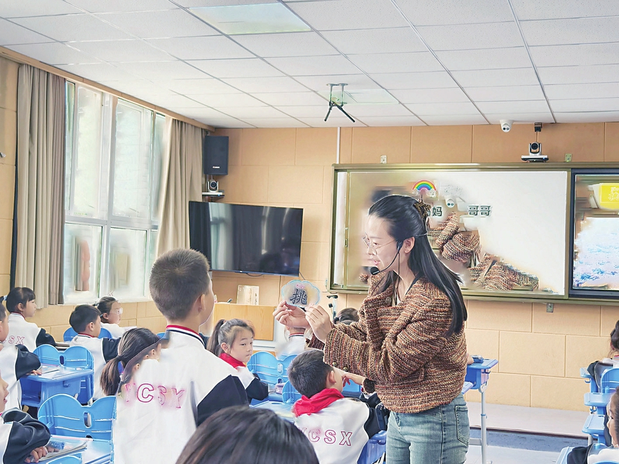 在讲《小蝌蚪找妈妈》一课时,刘文华把教室变成了“池塘”,学生们头戴自制头饰,扮演小蝌蚪、青蛙妈妈等角色;她还设计了“身体写字”游戏:学生们用胳膊比划横,用身体扭出竖,在欢声笑语中记住字形。“这样的课,我们永远不会走神!”一名学生这样说。