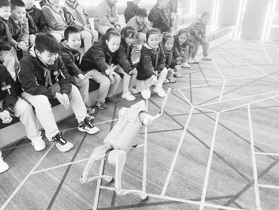 在曲沃未来科技馆,研学活动拉开序幕。讲解员带领学生们先后走进智能基石区、星际导航区、深海探秘区,系统讲解科技发展历程与核心科学原理。科学剧场内,连通器演示、液氮大炮等趣味实验让抽象知识变得直观可感;与机器人、机器狗的近距离互动,让大家真切感受前沿科技的魅力,现场不时响起惊叹声。在人工智能环节,通过无人机知识讲解与队列飞行观摩,大家全面掌握了无人机的种类、用途、飞行原理及智能控制系统。随后开展的科技小礼物制作环节,让大家沉浸式体验创造乐趣。