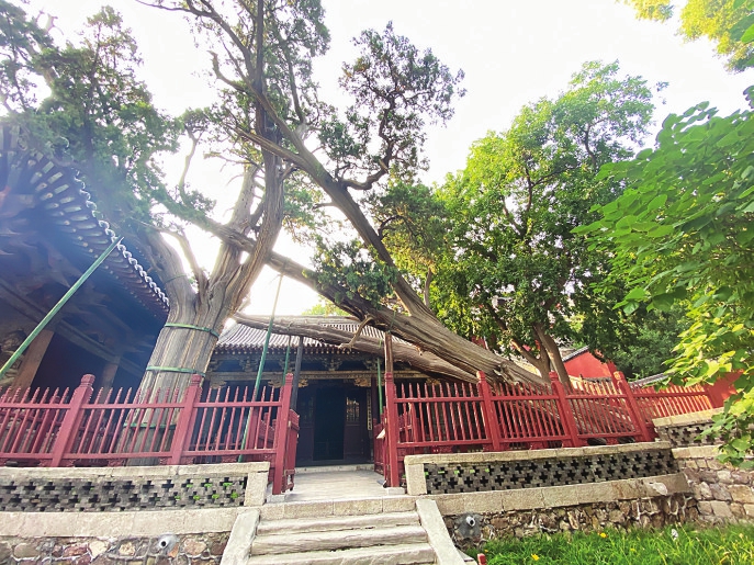 沿着太行一号旅游公路来到太原晋祠,在圣母殿的北侧有一株形如卧龙的侧柏,披着苍郁的烟色,横卧于苍穹之下。它就是日前入选首批“国保单位·古树名木”协同保护名录的周柏。在金盏黄色彩的晕染下,更显古韵悠悠。