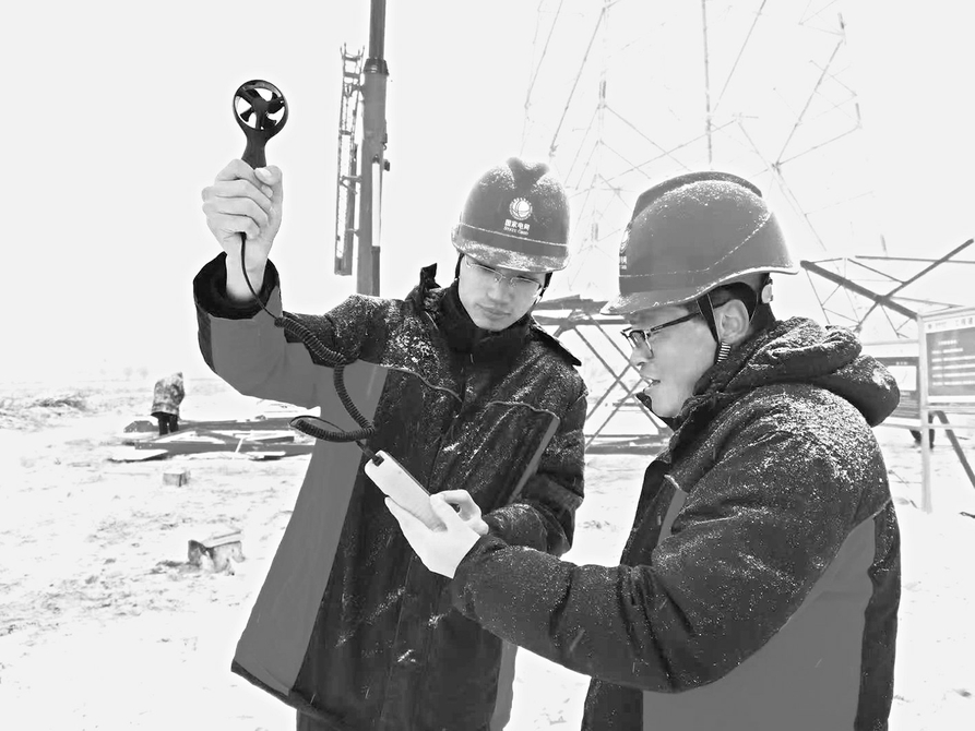 “你的安全帽和安全带外观良好,穿戴符合规范要求。在作业中一定要注意全过程正确使用这些个人安全防护用品……”近日,在山西大同同热三期1000千伏送出工程线路工程铁塔组立站班会上,青年安全生产示范岗岗员李一捷和吴玉鹏对施工人员的个人安全防护用品进行认真检查,做到严格把关放行,并提醒注意事项。作业中,李一捷和吴玉鹏不惧风雪严寒,以严谨细致的态度做好安全监护和气象观测,用心用情当好“安全哨兵”。这是国网山西送变电公司输电施工一分公司青年职工牢记责任、发挥作用的生动一幕。