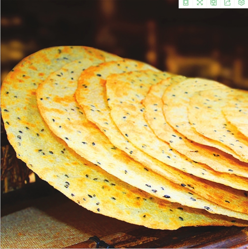 压饼是20世纪70年代后期传入昔阳的一种食品,因专用的压饼鏊压制烘烤制成,故名“压饼”,呈金黄色,也有“黄金饼”之称。压饼色泽鲜艳,饼薄如纸,入口香酥,纯香浓郁,存放百日色味不变,含有丰富的蛋白质、植物脂肪、糖、钙、磷、铁等矿物质。