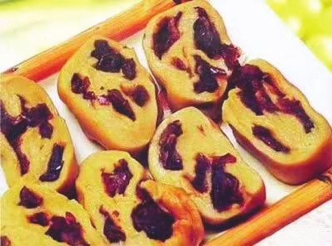 糕是昔阳当地婚嫁、寿诞等喜庆宴席的必备佳品。制作时,用黄米面加大枣蒸熟便是枣糕,取“早高”谐音求美好之意。
