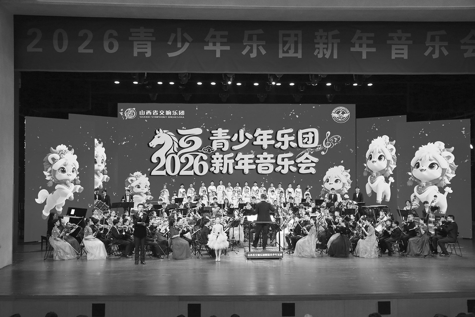 1月1日,由山西演艺集团指导,山西省交响乐团主办,山西省管乐协会、山西省合唱协会、阜康市文化馆协办的2026年青少年乐团新年音乐会在太原市工人文化宫举行。山西省交响乐团附属青少年乐团的乐手们用一场跨越中西、融合古今的音乐盛宴,为省城观众带来了充满希望与活力的新年祝福。