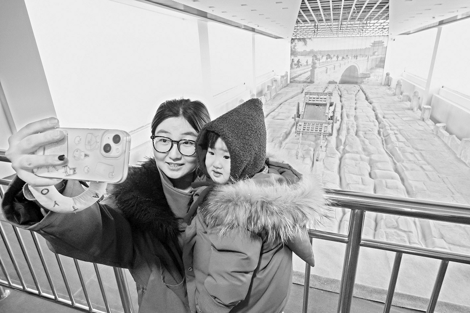 1月18日,山西省太原市,众多市民来到刚开放的镇远桥遗址馆参观。 明代太原府城护城河桥——镇远桥遗址,在历经尘封、发掘、保护之后,以遗址馆的形式面向公众开放后,前来探究见证城市600年交通更迭的游客络绎不绝。 据了解,这座护城河桥桥面清晰保留有深浅不一的车辙痕迹,见证了明清时期太原城商旅络绎、车马穿行的繁盛景象。本报记者 胡远嘉 摄影报道