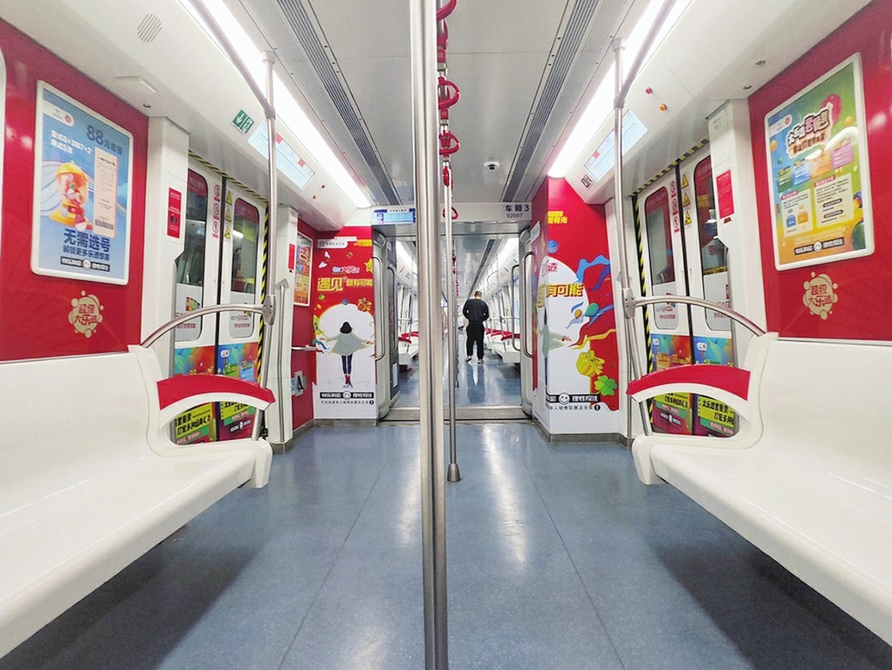这列满载新春祝福的地铁专列,以6节车厢为画布,分别以“新春购彩季益起刮顶呱刮”“大乐透套餐票把幸运打包带回家”“看赛事玩竞彩更精彩”“安心购彩守护行动”为主题,精心绘制出流动的年味画卷。