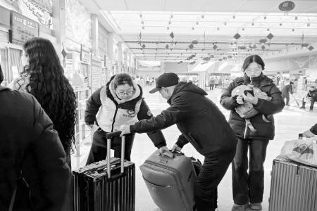 “我想为春运出份力,自己力气不算小,能帮大家拿行李。”王雯娇是第一次参与春运志愿服务,报名时她特意选择了安检口的岗位。她告诉记者,去年春运返乡时,她在车站得到过志愿者的帮助,这份温暖一直记在心里。如今有机会成为志愿者,只想把这份善意传递下去,帮助更多人顺利出行。