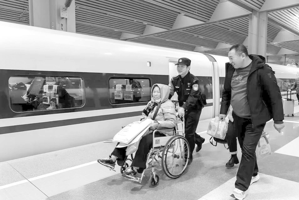 “请大家看好随身物品,依次上车,不要拥挤。”2月10日,太原南站内,从太原南开往北京丰台的G612次列车旁,00后青年民警袁健清大声地提醒乘客,春运以来,他已累计值乘40余趟列车、值守时长超300小时。