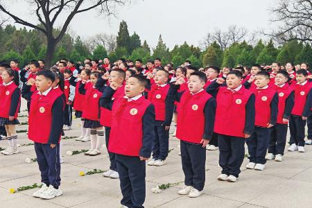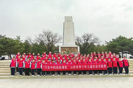“让我们以庄重仪式致敬英雄、铭记历史,传承红色基因,赓续精神血脉。”3月28日上午,春风轻拂着青松翠柏,在激昂的话语声中,由共青团山西省委、山西省少工委主办,山西共青团融媒体中心承办的“行走中的思政课堂”山西省少年儿童社会实践营——“行走悟初心 红色润童心”祭英烈活动正式拉开帷幕。来自太原市桃南小学、朝阳街小学的90名少年儿童满怀崇敬与追思之情,走进太原解放纪念馆牛驼寨烈士陵园、阳曲县店子底村红色教育基地,开启了一场意义非凡的红色研学之旅。