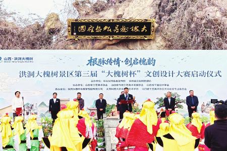 4月4日,第三届“大槐树杯”文创设计大赛启动仪式在根祖圣地、华人老家——临汾洪洞大槐树景区举行。洪洞县委宣传部有关领导,山西省工艺美术协会、省工艺美术协会文创专委会、省传统工艺美术发展协会、太原科技大学设计与艺术学院、洪洞大槐树寻根祭祖园相关负责人,以及各界设计领域的专家、爱好者参加启动仪式。本届大赛面向海内外设计机构、设计师、广大院校师生征集作品,最高奖奖金1万元,以激发参赛选手的创作热情。