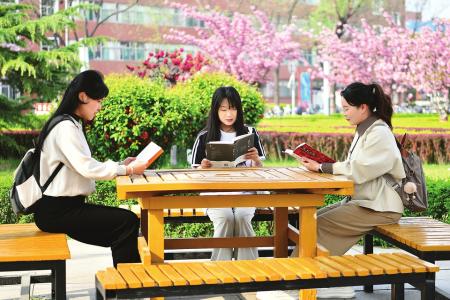 本次读书日系列活动氛围丰富浓厚,打破了单一课堂导读的形式。活动期间,历史与旅游文化学院“春秋读书会”、美术学院“朝歌汉服社”及教育科学学院的多名学子积极参与特色诵读活动。大家围坐于花间林下,齐声诵读经典篇目,在沉浸式诵读中感悟国学魅力,在交流品读中汲取精神力量。
