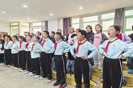 声乐教室里传出了清亮的童声。老师弹着钢琴,带着队员们练习发声:“咪——嘛——咪——”队员们鼓着腮帮子,认真模仿着口型。来自灵丘县的吴昕远说:“我以前只在音乐课上唱过歌,没想到唱歌可以这么开心。”