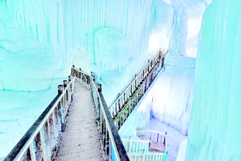 这段时间,运城五老峰“冰川大世界”也迎来了大量游客,他们在这里拍照、合影、发朋友圈,尽情享受冰雪世界的快乐。“冰川大世界”地处五老峰锦绣谷,是该景区持续打造的一个冬季旅游新打卡地。与夏季的风景截然不同,冬季的锦绣谷呈现出别样魅力。由于气温较低,岩层里渗出的流水依着地形凝固,再经人工雕琢,形成美丽的“冰景”,有的像瀑布,有的像蘑菇,还有的像笋尖。游客置身其中,宛若走进了童话世界。