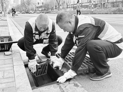 3月28日,太原市市政建管中心的工作人员正在柳巷北路小吃街为进水井安装截污挂篮,系太原市首次采用为进水井安装截污挂篮的新举措。此举将在雨水收集过程中有效拦截垃圾、树叶、油污、泥沙等,避免杂物进入管道发生淤积堵塞,从源头上控污,减少后期清淤、管网运行维护成本,从而保障汛期城市排水功能的正常运行,进一步维护好城市管网,提升城市内涝治理水平。 本报记者 康乐 摄影报道